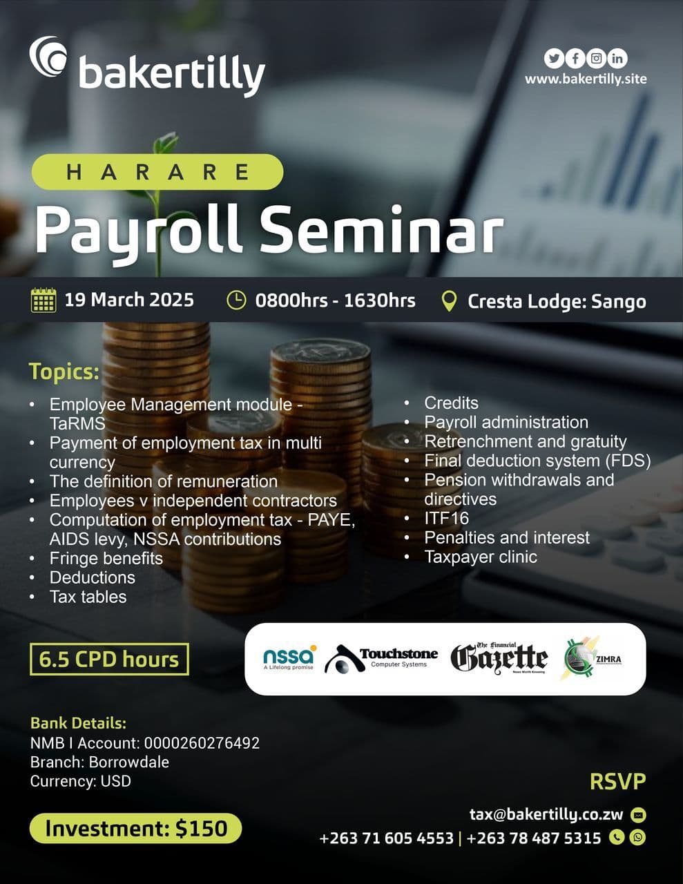 We are excited to invite you to our upcoming Payroll Seminar being held on the 19th of March 2025.